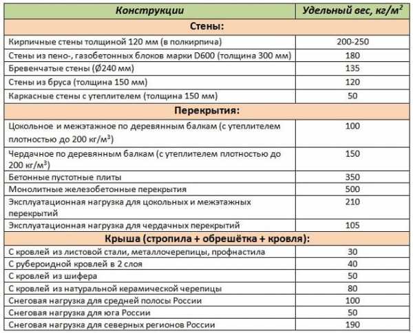 - Примерный вес здания, перекрытий, кровли и будущей обстановки.