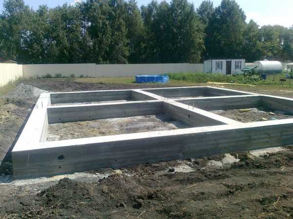 Бетонная лента заливается после рытья траншеи, которая проходит по периметру объекта и под внутренними стенами, выполняющими роль несущих. Армированный бетонный монолит обеспечивает неподвижность и устойчивость здания при гораздо меньших сметных расходах на стройматериалы и работу.