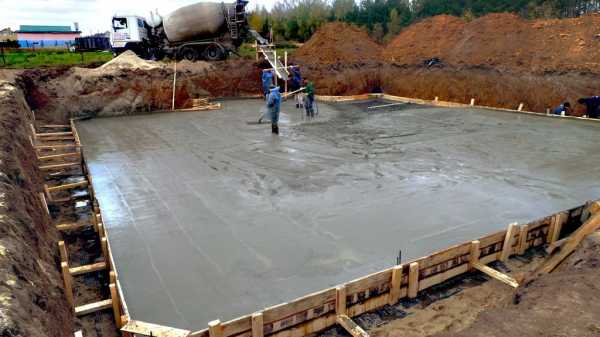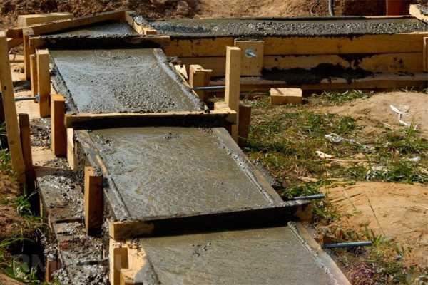 - в опалубку сплошной плитой заливают бетон слоями по 150 мм. При этом нельзя допускать длительных временных перерывов между очередной заливкой;