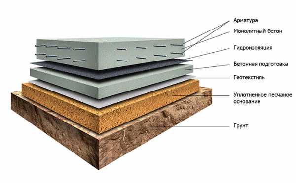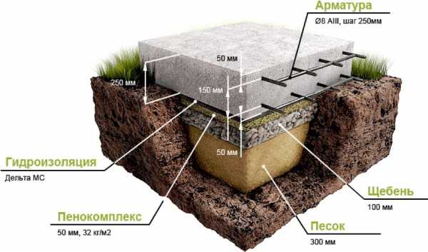 - При оборудовании плитного основания нивелируется проявление давления от пучения грунта.