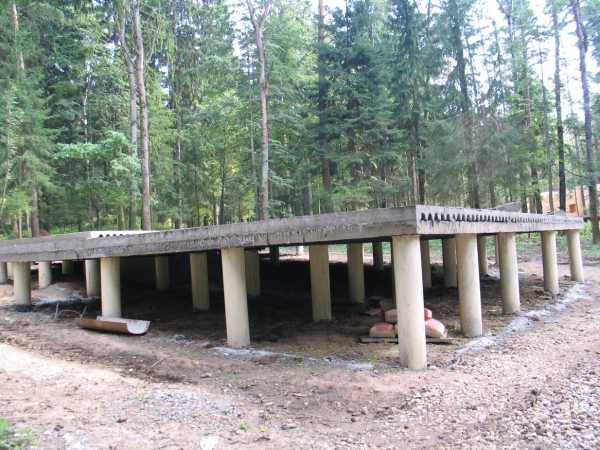 Основа столбчатого фундамента, то есть столбы, устанавливаются на уровне, превышающем глубину промерзания грунта. Его не рекомендуется использовать на слабонесущих, рыхлых и пучинистых грунтах и на рельефных, неровных участках.
