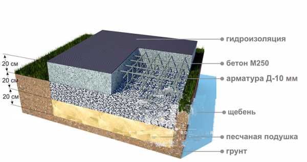 - на нее – гидроизоляцию и деревянную опалубку с арматурой;