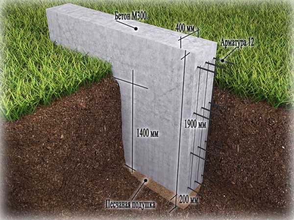 Столбы устанавливают по вертикали на глубину, превышающую глубину промерзания. Это может быть метр или 1,5 м. Пространство между опорами засыпают песком, затем столбы связывают железобетонным поясом.