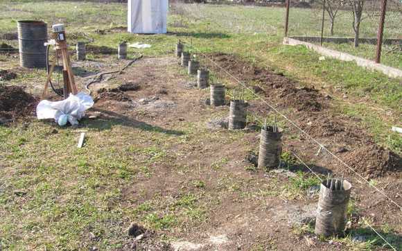 - Специальной машиной, буром формируются лунки под опоры диаметром 25,0 см. Вынимается земля. Для предотвращения обвала стенок в полости вставляются пластиковые, асбестоцементные или другого вида трубы.