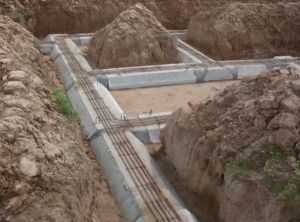В любом случае стенки выработки должны обеспечить пространство для рабочих, контролирующих направление подачи автокраном элементов фундамента, корректирующих установку блока ломами, при необходимости устраивающих опалубку для армирующих поясов.