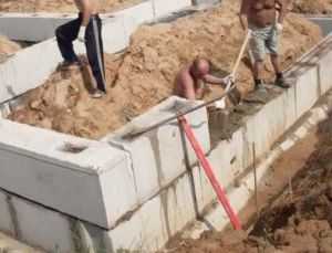 Монтаж сборного ленточного фундамента из блоков ФБС