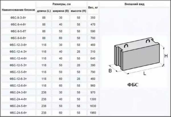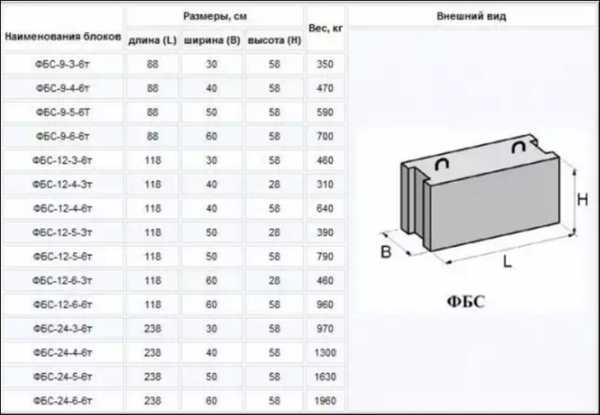 Например, ФБС 24.4.6 -Т расшифровывается так: прямоугольный блок из железобетона высокой плотности. Длина 2380 мм, ширина 400 мм, высота 580 мм. По аналогии вы сможете расшифровать и другие обозначения.