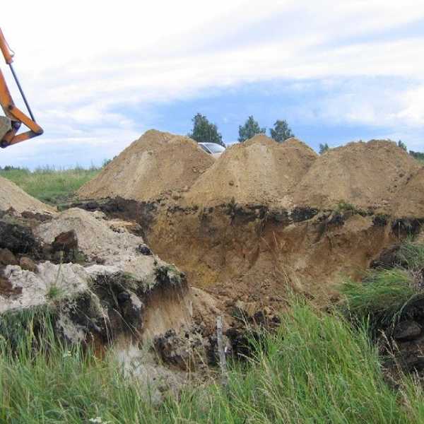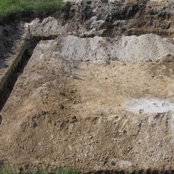 - Снимается плодородный слой земли, вывозится или складируется на участке.