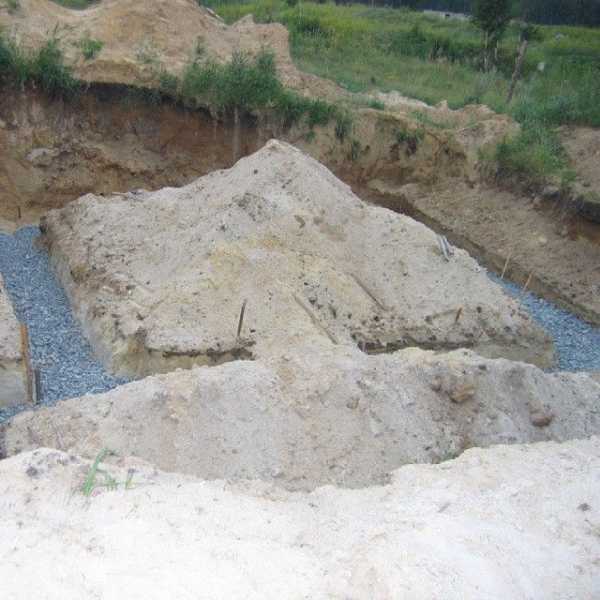 Обратите внимание, что замещающий природную породу песок нужно изобильно смочить и трамбовать до тех пор, пока на поверхности не перестанет отпечатываться подошва.