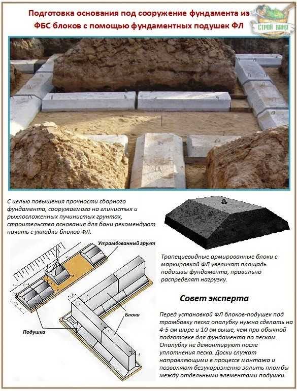 Пошаговая инструкция по возведению фундамента из блоков ФБС своими руками .