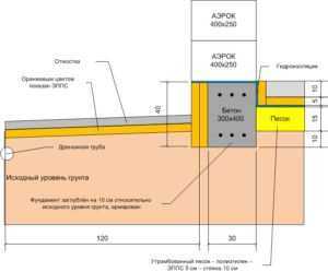 На дне подготовленной траншеи обязательно делают подушку из песка и щебня, причем каждый слой хорошо утрамбовывают. Высота подушки должна составлять около 0,2 метра.