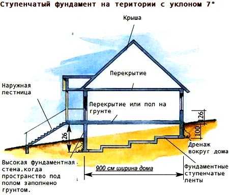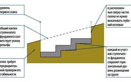 Принципы возведения ленточных фундаментов на участках с уклоном