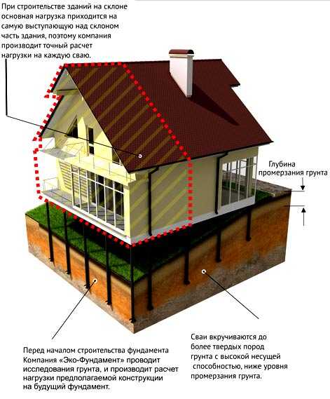- при любых углах уклона участка – для свай вообще не принципиален перепад в высотах между крайними точками пятна застройки.