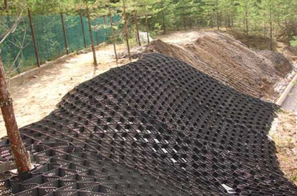- укрепление склона – необходимые работы, позволяющие сохранить конфигурацию участка. При незначительном уклоне достаточно невысоких подпорных стенок и высадки кустов с деревьями. За счет корневой системы они удержат почву на месте. При сильном изменении уровня лучше использовать геосетки и дополнительные сваи, вбитые перпендикулярно поверхности склонов.
