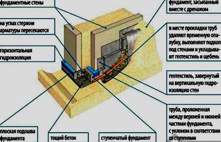 - повышенная гидроизоляция – для всех подземных конструкций она необходима из-за постоянного изменения уровня грунтовых вод, проникновения вглубь дождевой и талой воды;