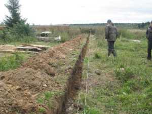 - Ленточный фундамент. Для этого типа работы с лопатой несколько усложняются. Сначала нужно формировать траншею по длине всего забора, не вылезая за периметр деревянных колышек. Ширина траншеи должна совпадать с лентой, а глубина не превышать полметра. Теперь можно выкапывать и ямы для столбов.