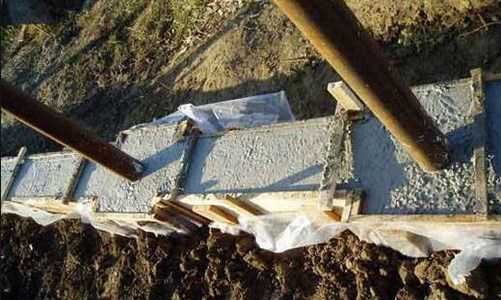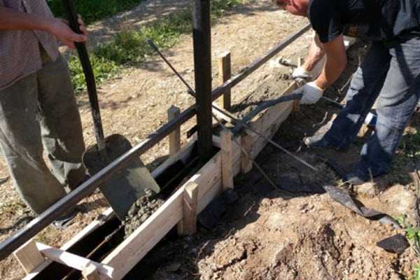 Далее необходимо выполнить и установить опалубку из деревянных материалов. Эта работа несложная и выполняется своими руками за короткий срок. А после установки можно делать заливку ям и траншей раствором послойно и равномерно.rufundament.ru