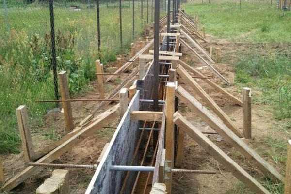 По всей ленте проделать этот этап. Дальше с деревянных досок сформировать опалубку. Приготовленным бетонным раствором залить всю траншею послойно. Ключевую роль играет техника слоения: так у вас не получится пустоты в некоторых местах, которая позже скажется на прочности забора.