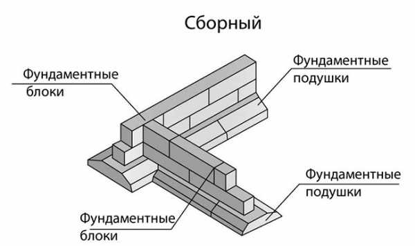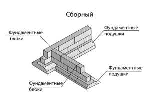 - Сборный фундамент – это установленные рядом ЖБ блоки.