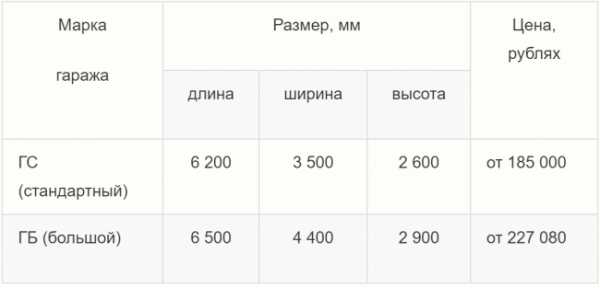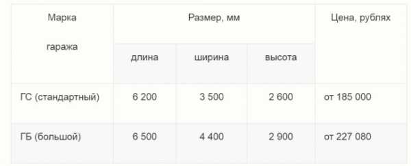 Кроме стандартных размеров, предусмотрены сборные гаражи большие для «Газелей», размеры и средние цены по Москве с доставкой можно увидеть в представленной ниже таблице: