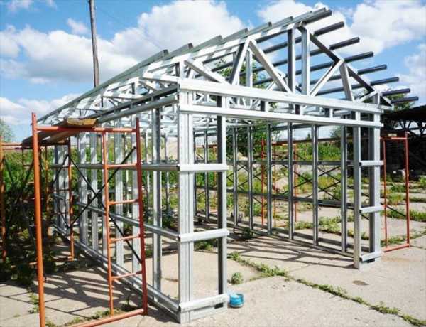 На сегодня это один из наиболее популярных сборных вариантов. Кроме стандартной схемы на основе каркаса из стальных дюймовых труб, соединяемых муфтами, существуют и успешно используются сборные боксы из тонкостенного стольного U-образного профиля, системы из готовых стеновых панелей на основе сэндвич- плит, и даже каркасные конструкции из штампованного алюминиевого профиля.
