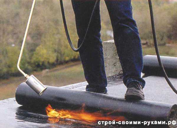 Для приклеивания материала его следует нагреть газовой горелкой так, чтобы на приклеиваемой поверхности вяжущий материал стал жидким, после чего можно клеить.