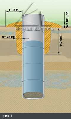 - Новый колодец должен дать усадку, это происходит чаще всего во время паводка, между шахтой и землей зазор заполняется верхней водой, почва размокает, начинает падать и плотно обжимает шахту.