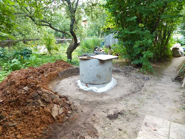 Грунт у нас на участке глинистый. Плодородный слой идёт до глубины 40-50 см, а ниже начинается глина. Так что я решил выбрать почвенный слой вокруг колодца на расстоянии около метра и засыпать котлован глиной. Благо её хватало — рядом с колодцем высилась куча глины, вынутой рабочими при копке колодца. Качество глины меня вполне устраивало. Да и появлялась возможность частично её утилизировать.