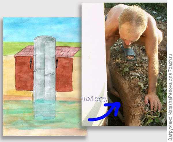 Это дает возможность, образовавшемуся глиняному замку, препятствовать попаданию верховодки в колодец, которая несет в себе удобрения и разные органические вещества, вымываемые из почвы.