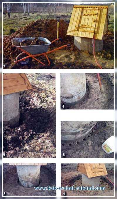 Устройство колодца и глиняного замка. Фото с сайта kolodec.ru