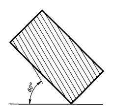 7. Узкие и длинные площади сечений (например, штампованных, вальцованных и других подобных деталей), ширина которых на чертеже от 2 до 4 мм, допускается штриховать полностью только на концах и у контуров отверстий, а остальную площадь сечения — небольшими участками в нескольких местах (черт. 5 и 6). Линии штриховки стекла (черт. 7) следует наносить с наклоном 15-20° к линии большей стороны контура сечения.