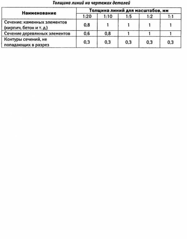 Примерная толщина линий обводки основных строительных чертежей приведена в табл. 3.2, 3.3 и 3.4.