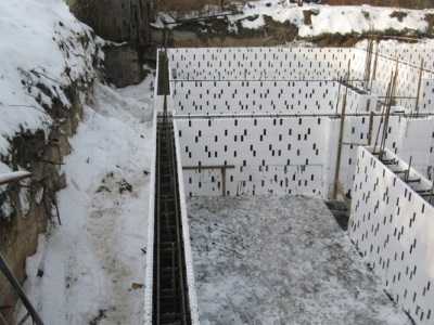 - При заливке фундамента необходимо дополнительное утепление опалубки пенопластом либо минеральной ватой.