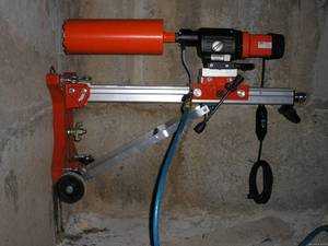 Алмазные коронки требуют применения довольно сложных технических устройств, позволяющих выполнять сверление без ударов и вибрации