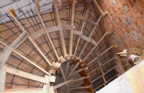 Итак, опалубок для винтовой лестницы из бетона надежно укреплен, зафиксирован и проверен. Если лестница будет с перилами, то перед заливкой бетоном на крепеж можно установить специальные пластины, из которых впоследствии будут формироваться боковые стенки.