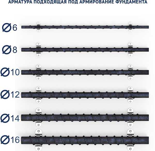 Для армирования ленточного фундамента используются стержни разного диаметра в зависимости от предназначения.