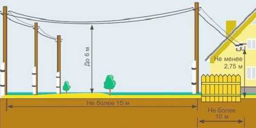 ΠΡΠΈ ΠΏΡΠΎΠΊΠ»Π°Π΄ΠΊΠ΅ ΡΠ²ΠΎΠΈΠΌΠΈ ΡΡΠΊΠ°ΠΌΠΈ Π²ΠΎΠ·Π΄ΡΡΠ½ΠΎΠΉ Π»ΠΈΠ½ΠΈΠΈ ΠΏΠΎΠ΄ΠΊΠ»ΡΡΠ΅Π½ΠΈΡ ΠΎΡ ΡΡΠΎΠ»Π±Π° ΠΊ Π΄ΠΎΠΌΡ Π½Π°Π΄ΠΎ ΡΡΠ΅ΡΡΡ Π½ΠΎΡΠΌΡ ΠΠ£Π. Π ΠΏΡΠ°Π²ΠΈΠ»Π°Ρ ΡΠ΅ΡΠΊΠΎ ΠΏΡΠΎΠΏΠΈΡΠ°Π½ΠΎ, ΡΡΠΎ ΠΌΠ°ΠΊΡΠΈΠΌΠ°Π»ΡΠ½ΠΎΠ΅ ΡΠ°ΡΡΡΠΎΡΠ½ΠΈΠ΅ ΠΎΡ Π²Π²ΠΎΠ΄Π° ΠΏΠΎΡΡΠ΅Π±ΠΈΡΠ΅Π»Ρ Π΄ΠΎ ΠΎΠΏΠΎΡΡ ΡΠΎΡΡΠ°Π²Π»ΡΠ΅Ρ 25 ΠΌ, ΠΈΠ½Π°ΡΠ΅ ΠΏΡΠΈΠ΄Π΅ΡΡΡ ΡΡΡΠ°Π½Π°Π²Π»ΠΈΠ²Π°ΡΡ ΠΏΡΠΎΠΌΠ΅ΠΆΡΡΠΎΡΠ½ΡΠΉ ΡΡΠΎΠ»Π±.