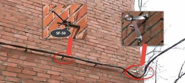 - ΠΡΠΈ Π²ΠΎΠ·Π΄ΡΡΠ½ΠΎΠΌ ΠΏΠΎΠ΄ΠΊΠ»ΡΡΠ΅Π½ΠΈΠΈ ΠΊΠ°Π±Π΅Π»Ρ ΠΊΡΠ΅ΠΏΡΡ Π°Π½ΠΊΠ΅ΡΠ½ΡΠΌΠΈ ΠΊΡΠ΅ΠΏΠ΅ΠΆΠ°ΠΌΠΈ ΠΊ ΡΠ°ΡΠ°Π΄Ρ Π·Π΄Π°Π½ΠΈΡ. ΠΠ»Ρ ΡΡΡΠ΅ΡΠΈΡΠ½ΠΎΡΡΠΈ Π΅Π³ΠΎ ΠΌΠΎΠΆΠ½ΠΎ ΠΏΡΠΎΠ»ΠΎΠΆΠΈΡΡ Π²Π½ΡΡΡΠΈ Π³ΠΎΡΡΡ ΠΈΠ»ΠΈ ΠΏΠ»Π°ΡΡΠΈΠΊΠΎΠ²ΠΎΠ³ΠΎ ΠΊΠΎΡΠΏΡΡΠ°. Π ΡΠ²Π΅Π΄Π΅Π½ΠΈΡ, Π΅ΡΠ»ΠΈ ΡΡΠ΅Π½Ρ Π΄ΠΎΠΌΠ° Π΄Π΅ΡΠ΅Π²ΡΠ½Π½ΡΠ΅, ΡΠΎ ΠΈΡΠΏΠΎΠ»ΡΠ·ΠΎΠ²Π°Π½ΠΈΠ΅ ΠΊΠΎΡΠΎΠ±Π° ΠΎΠ±ΡΠ·Π°ΡΠ΅Π»ΡΠ½ΠΎ.