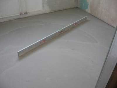 Прежде всего нужно проследить за тем, чтоб поверхность под укладку была чистой: загрязнения и пыль необходимо удалить. Важно помнить, что класть плитку нужно только на идеально ровную и жесткую поверхность. Проверить ровность основания нам поможет строительный уровень. Если черновой пол не ровный и присутствуют дефекты, углубления, необходимо их заполнить положить цементно-песчаную стяжку. В противном случае будет неоправданно увеличиваться расход клея.