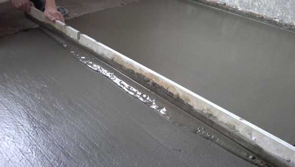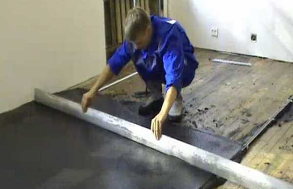 Раствор готовится непосредственно на месте заливки и укладывается равномерным слоем по маякам.