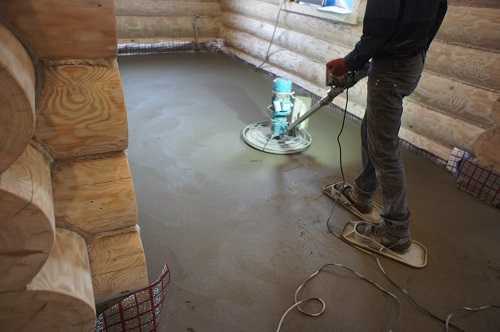 Всю стяжку затереть дисковой шлифовальной машиной. Углы и примыкания к стенам затереть полутерком. При этом, по свежеуложенной стяжке лучше передвигаться в специальных бетоноступах, чтобы избежать ее продавливания и повреждения.