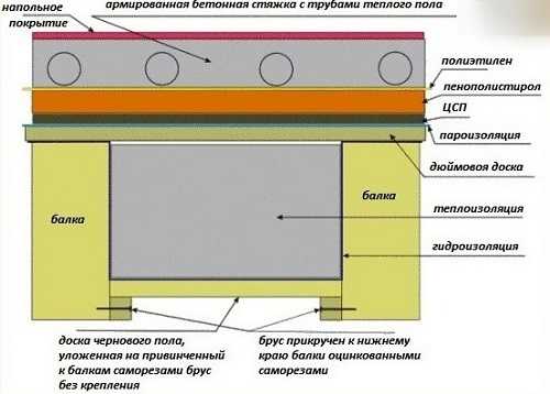 Рисунок 6. Схема устройства системы теплого пола в стяжке по деревянному перекрытию.