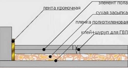 Рисунок 8. Устройство стяжки из ГВЛ по керамзиту.