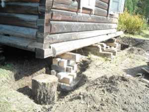 Ремонт фундамента можно осуществить только после того, как поднимется дом.