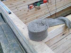 - После укладки каждого последующего венца необходимо прокладывать утеплитель.