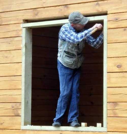 Первоначально укладывается материал первого венца. Сторона с дефектами должна быть направлена вверх. При проведении данной работы нужно помнить об усадке бруса. Дерево покрывается специальным средством.