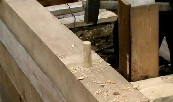 - После этого брусья соединяли, а для надежности скрепляли гвоздем.