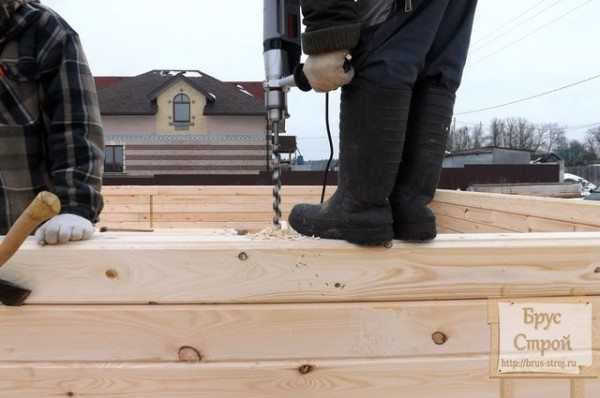 Отверстия в брусе необходимо проделывать дрелью с большой насадкой