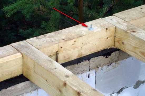 Стоит отметить, что данный метод подойдет и как крепление бруса к бетону. В этом случае его используют в качестве дополнительного армирующего элемента. Если же конструкция дома предполагает, что стены будут возводиться из плит, то для организации перекрытия и установки бруса создают бетонный пояс.