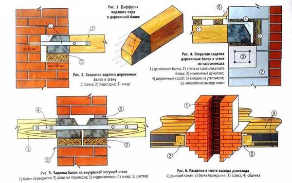 Традиционное крепление торца деревянной балки к стене — это заделка в кирпичную кладку.
